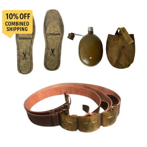Vintage Soviet Russian Flask, belt and Universal insoles BANDLE
