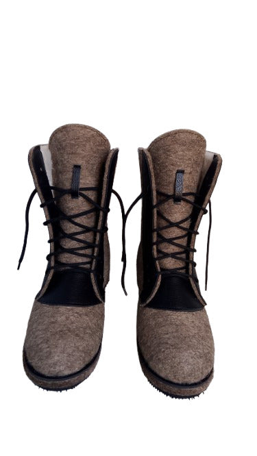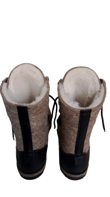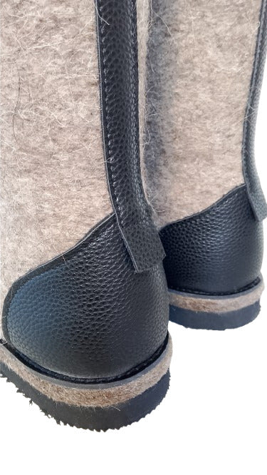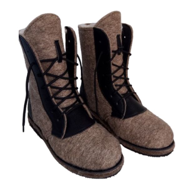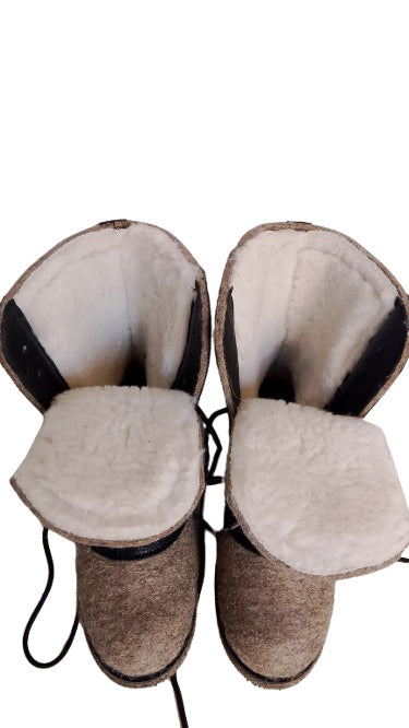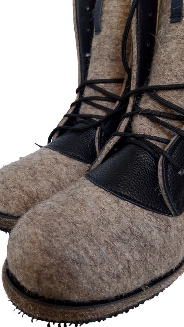 Russian traditional winter felt boots Valenki Combat Boots with natural fur and felt.